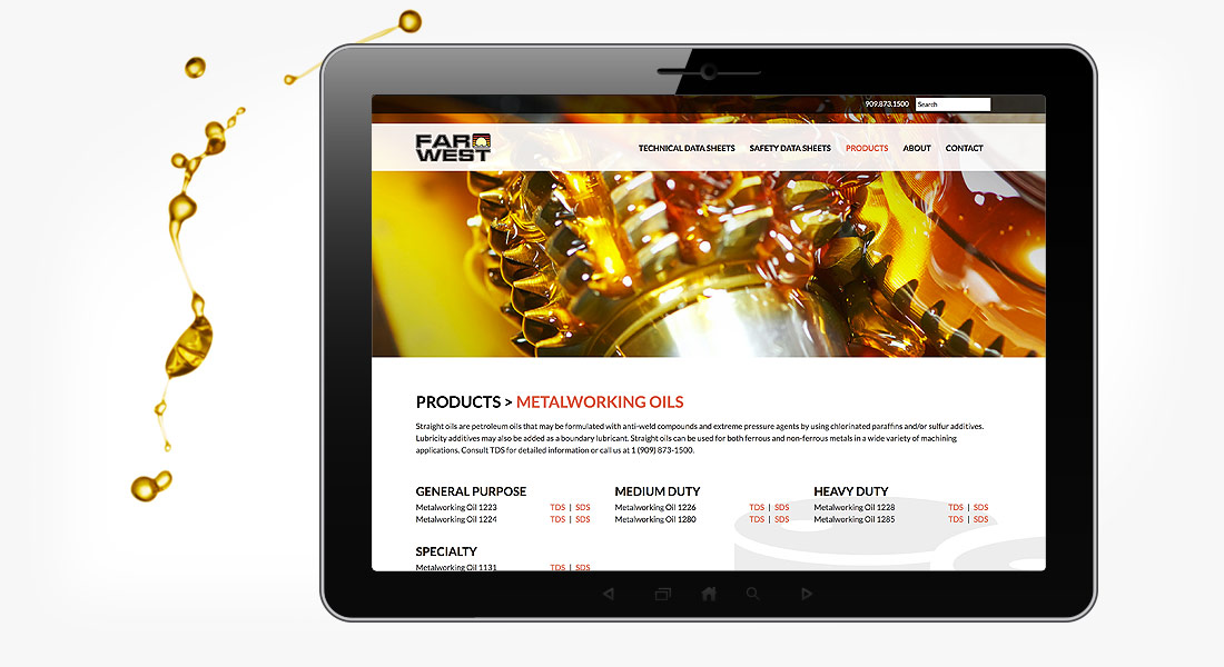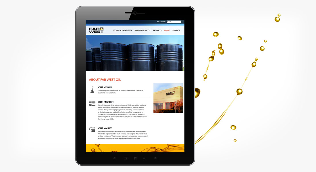 Far West Oil approached us looking to update their online presence. We started with a blank slate and came up with a clean, informative site that makes it easy for their clients to quickly find what exactly what they need. The database we created makes updating their data sheets very easy to complete internally, saving them future spending on programming costs. Also, we brought in more impactful imagery to break up text and give the site a more polished look and feel.
